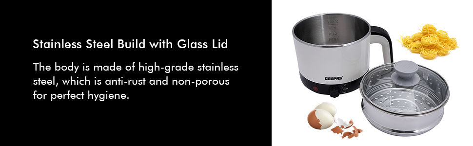 The Geepas 1000W Multifunctional 1.7L Double Layer Kettle combines a cordless kettle, steamer, and egg boiler in one sleek appliance. Featuring a 1.7L insulated double-layer design, two-speed temperature control, boil-dry protection, and a 360° swivel base, it offers fast, safe, and versatile cooking for modern kitchens. Ideal for multitasking professionals who demand efficiency and style.